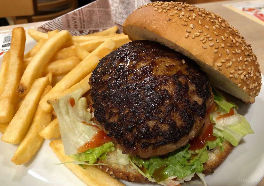 サクッと「唐揚げ定食」を完食し「バーガー」に進出します。